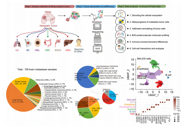 值得一提的是,单细胞测序技术正在深刻改变我们对肿瘤微认知的深度与广度。然而,脑转移样本的细胞异质性高、来源复杂,传统批量测序难以揭示其细胞组成和状态演化的精细图谱,这使得高分辨率、多癌种整合的单细胞分析成为迫切需求。